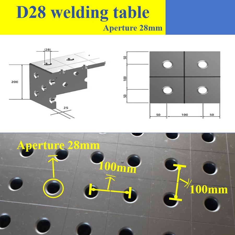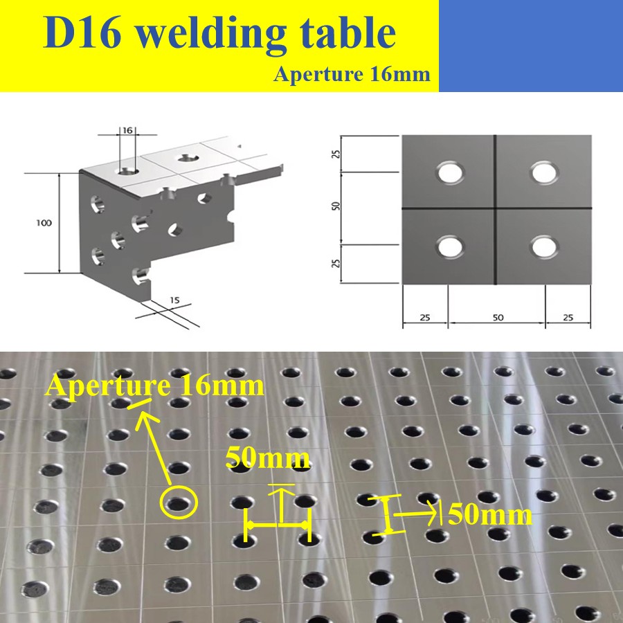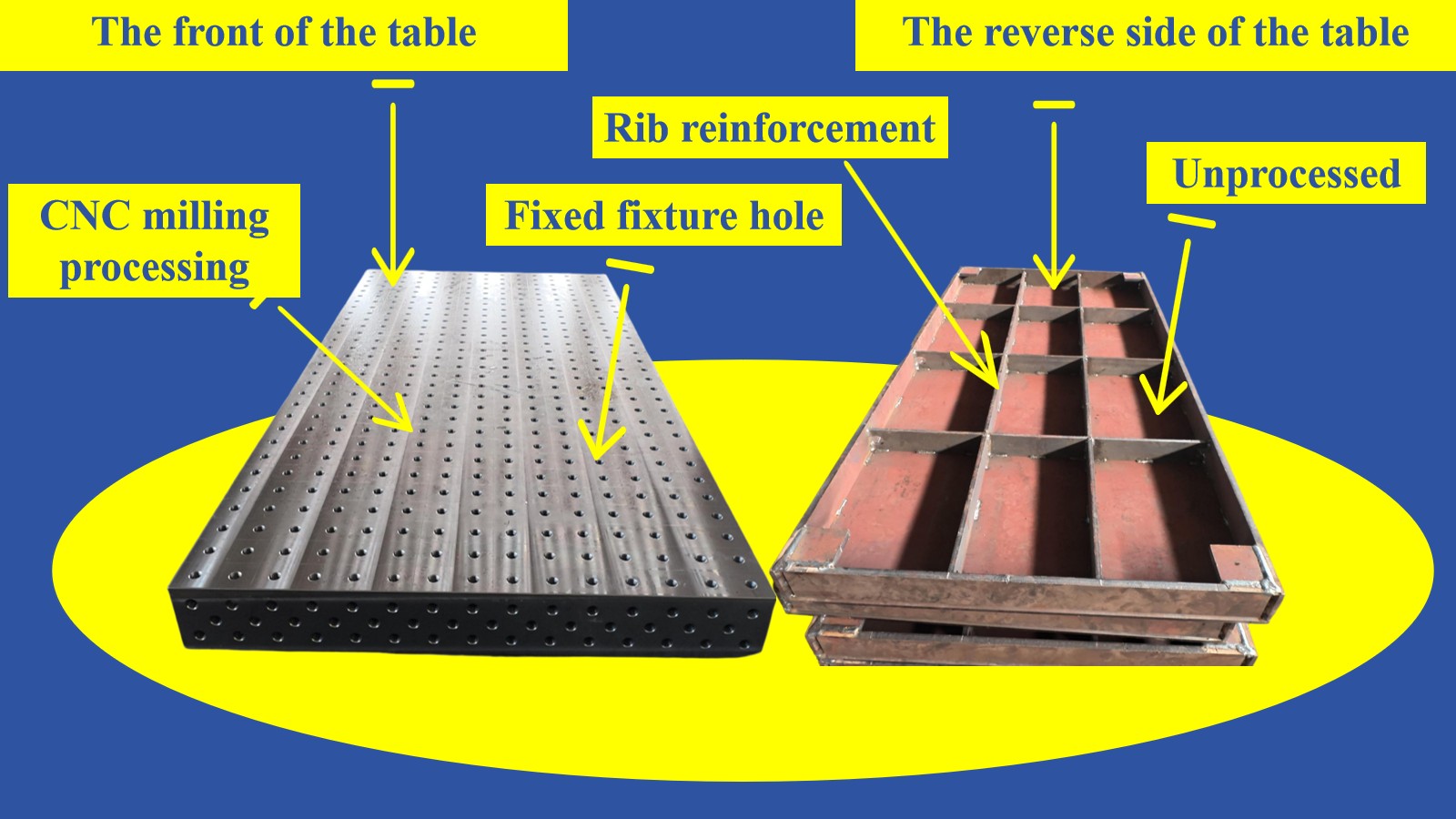Monikäyttöinen sopeutettavuus: Pöytälevyssä on valmiiksi poratut asennusreiät ja kiinnitysasennot erilaisten työkalukiinnikkeiden nopeaa kiinnitystä varten, ja ne ovat yhteensopivia eri prosessien, kuten manuaalisen kaarihitsauksen, argonkaarihitsauksen ja suojakaasuhitsauksen kanssa.